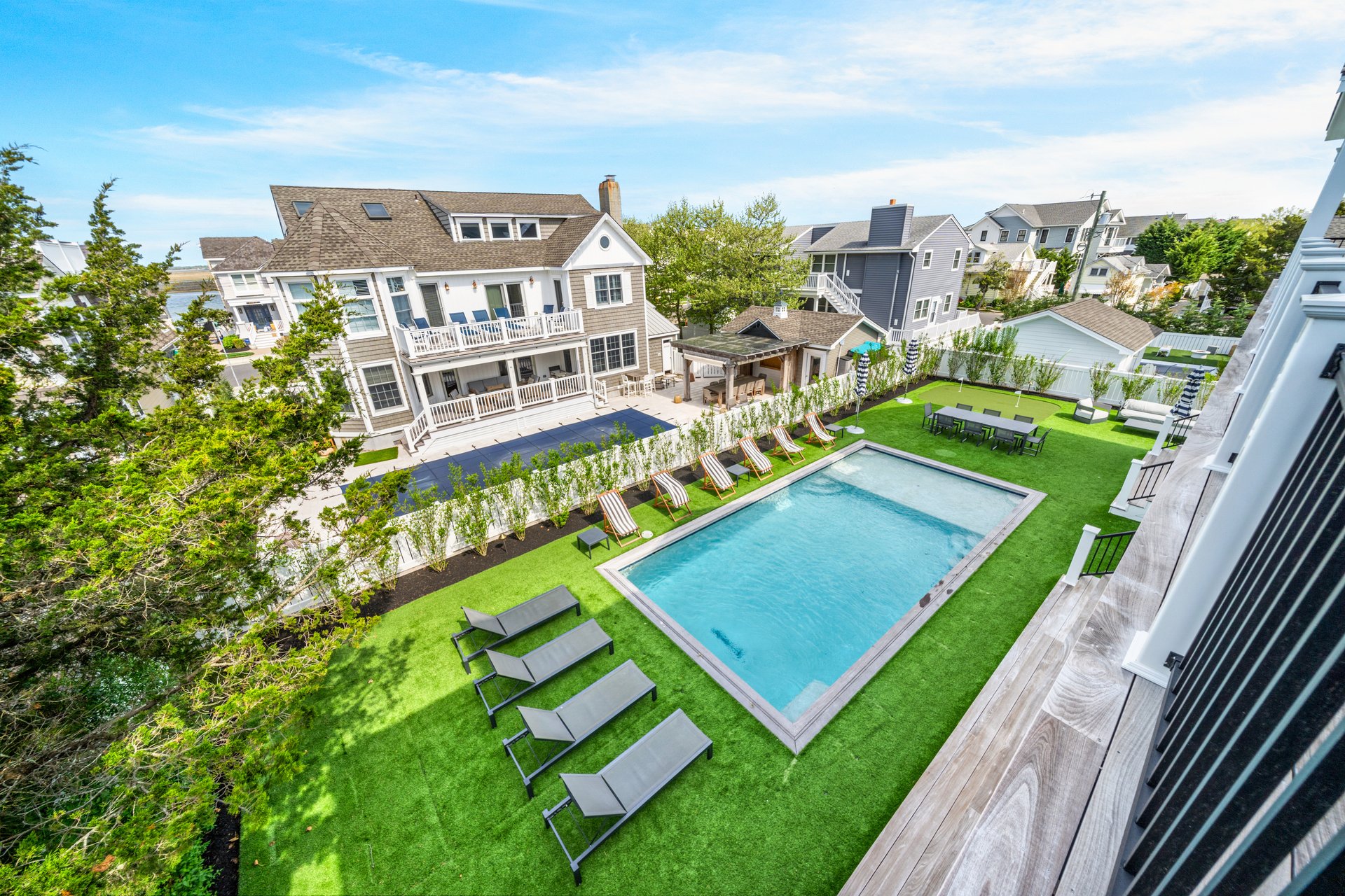 If you’re searching for a luxury Stone Harbor rental home that checks every box—space, walkability, and resort-style amenities—this exceptional 7 bedroom, 6.5 bathroom home with a private pool, elevator, and putting green is one of the most sought-after properties on the island.